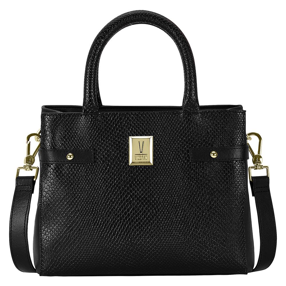 Bolsa feminina preta, possui 1 compartimento externocom fecho por zíper. Com alça de mão fixa e alça transversal opcional com regulagem.