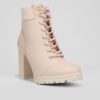 Bota Coturno Cano Curto Vizzano knit Salto Alto Grosso Feminina – Off White