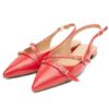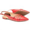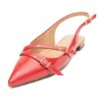 Sapatilha feminina vermelha, bico fino, solado emborrachado, em verniz pu, salto com 1,5 cm de altura e tira com fecho para regulagem com fivela dourada.Original, na caixa e com nota fiscal.