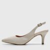 Possui recorte slingback com fecho ajustável
